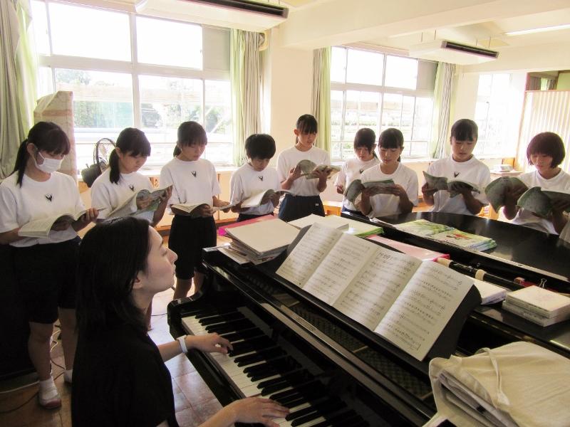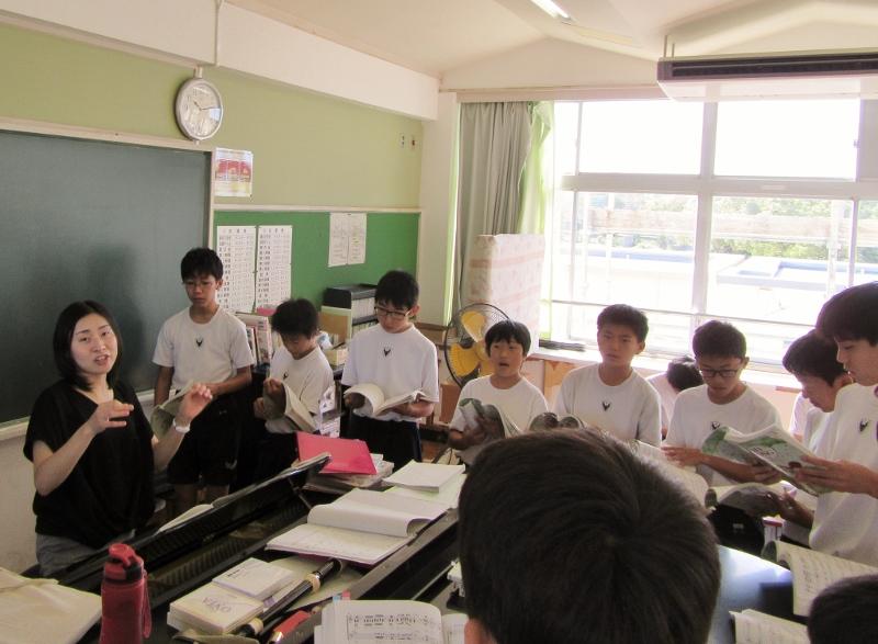 音楽の授業で 投稿日時 : 2019/10/10 主担 カテゴリ:今日の出来事 1年生の音楽の授業では合唱練習をしていました。パートごとの練習と、全体での合わせ練習を行っていました。音程や歌詞を覚え、顔を上げて自信をもって歌える生徒も増えています。 {{options.likeCount}} {{options.likeCount}}
