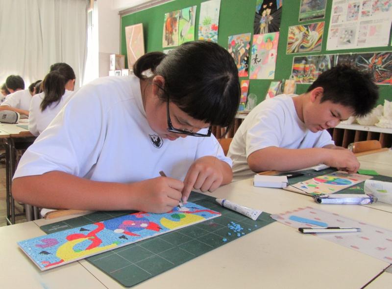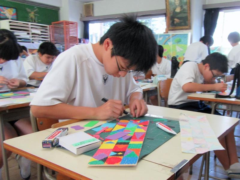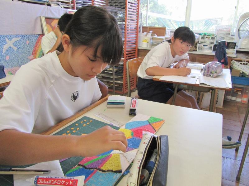 美術の授業で 投稿日時 : 2019/10/10 主担 カテゴリ:今日の出来事 1年生の美術の授業では、モザイク作品の追い込み作業をしていました。ほとんどの生徒が完成間近となっています。 {{options.likeCount}} {{options.likeCount}}