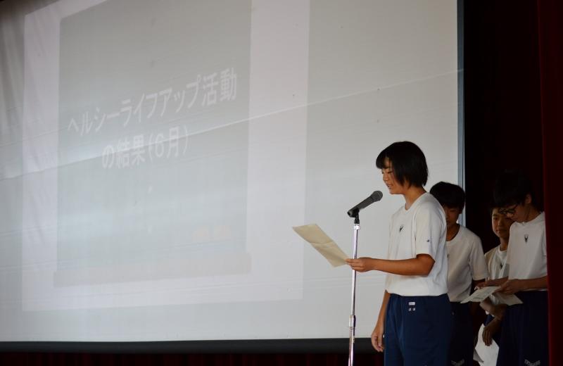 後期始業式 投稿日時 : 2019/10/15 主担 カテゴリ:今日の出来事 後期が始まりました。始業式では、駅伝部の表彰披露を始め、生徒代表による後期の抱負の発表、校長先生のパワーポイントを用いた式辞、校歌斉唱、英語スピーチコンテスト出場者の発表、生徒会認証式と盛りだくさんの内容でした。 {{options.likeCount}} {{options.likeCount}}