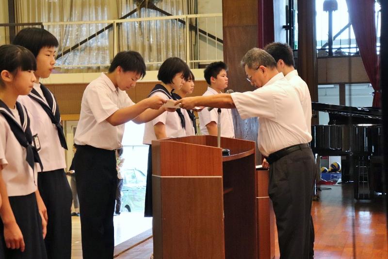 前期修了式 投稿日時 : 2019/10/11 主担 カテゴリ:今日の出来事 11日、2学期制を行っている豊橋市では、本日前期の終業式をしました。柔道部の表彰、校長先生のお話、駅伝部の激励会をしました。駅伝部の大会は台風19号の影響で、13日に順延となっています。 {{options.likeCount}} {{options.likeCount}}