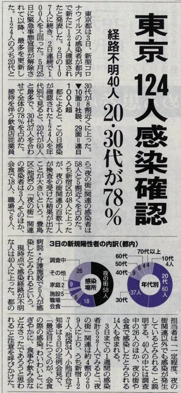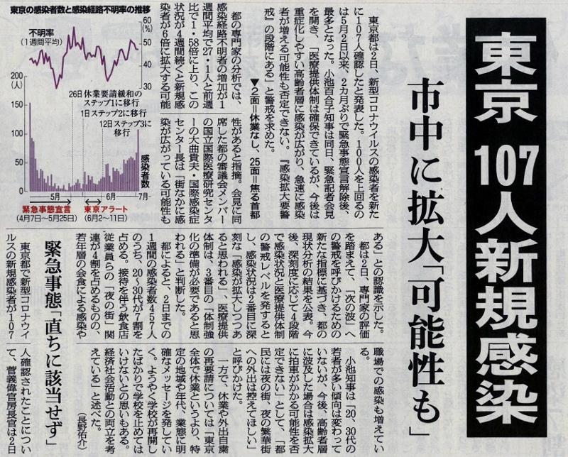学校を止めない 投稿日時 : 2020/07/03 主担 カテゴリ:今日の出来事 (令和2年7月3日 朝日新聞より) 東京での感染爆発が始まりました。今日の東京都の感染者数も124名となっています。今後の感染拡大の状況によっては、緊急事態宣言も関東地方に出される可能性もありますし、店などの休業などの自粛要請も出される可能性もあります。週末となりますが、東京への出張や観光は十分に気をつけるようにしてください。大人の身勝手な行動で、子どもの学校が理不尽に休校に追い込まれるようなことがあってはいけません。 {{options.likeCount}} {{options.likeCount}}