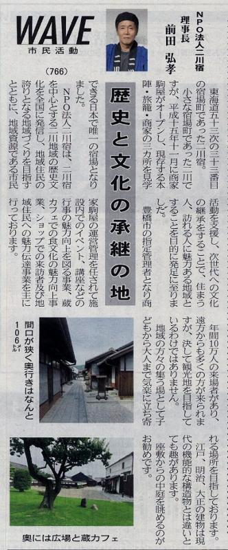 商家駒屋 投稿日時 : 2020/07/04 主担 カテゴリ:今日の出来事 (令和2年7月4日 東日新聞より) 二川宿本陣資料館より旧街道を東に行くと商家駒屋があります。昔の建物や蔵だけでなく、おしゃれなカフェなどもあります。そして、前田氏には、二川中学校にも、体育祭や文化祭などの折に、毎年ボランティアとして携わっていただいています。 {{options.likeCount}} {{options.likeCount}}