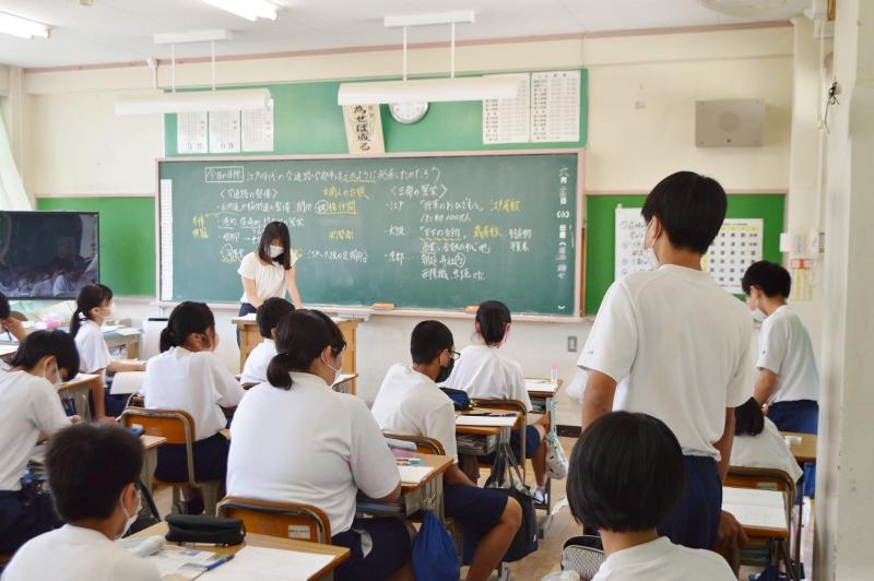 社会の授業で 投稿日時 : 2020/06/24 主担 カテゴリ:今日の出来事 2年生の社会の授業では、「江戸時代の交通路と都市がどのように発展したのか」について学びました。ペアで意見交換したり、グループで意見交換して深めたことを発表したりしました。 {{options.likeCount}} {{options.likeCount}}