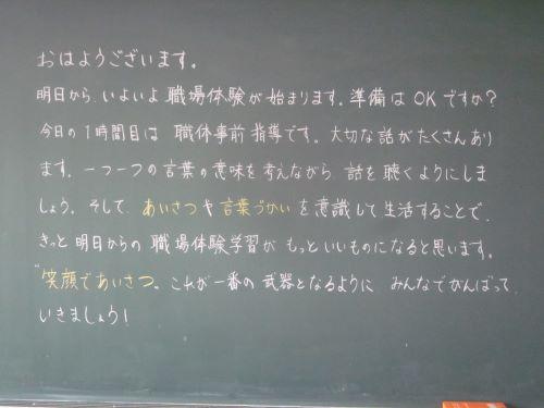 明日からの三日間、2年生は「職場体験学習」にでかけます。学年にとって大きな行事であります。この行事後には、成長した姿も多く見られます。これは、受け入れていただける事業所の皆様のおかげです。二川校区だけでなく、近隣校区の事業所までにもご協力いただいております。本当にありがとうございます。明日からの活動が充実するよう、2年生は最後の事前指導を受けていました。