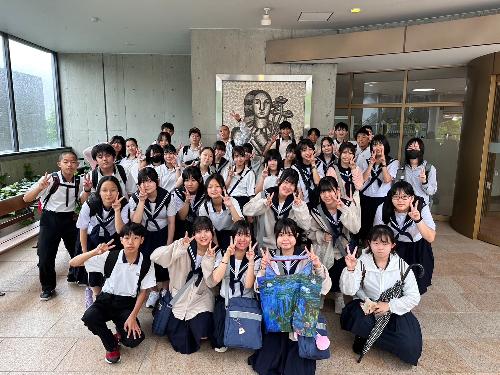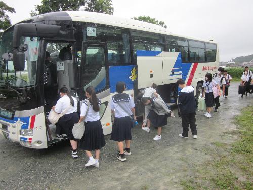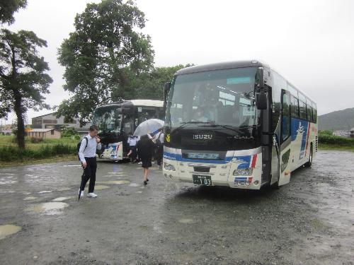 修学旅行が楽しいのは、どこへ行くかでも、そこで何をするかではない。誰と行くかであり、天気など関係ない。と、出発式で確認をし、元気にバスは二川中をスタートしました。今日からの三日間、少しずつではありますが、このホームページで紹介していきます。