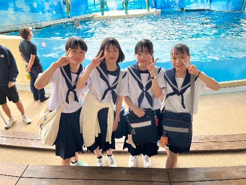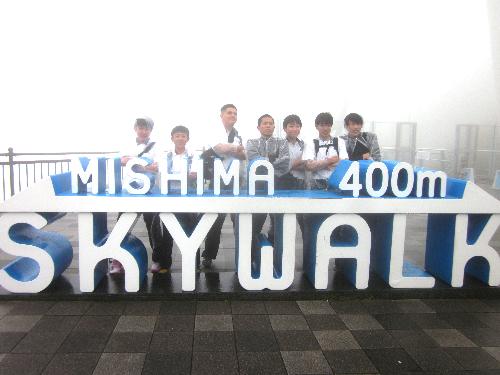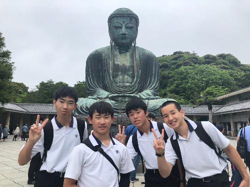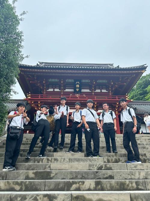 三ヶ日インターチェンジから高速道路に入り、順調に関東方面に移動しました。学級のバスから、分散地方面へのバスに乗り換えました。5台のバスは「三島スカイウォーク」「箱根彫刻の森美術館」「新江の島水族館」「鎌倉大仏」「鶴岡八幡宮」へと向かいました。三島スカイウォークは霧と雨の影響で富士山は見えませんでしたが、400mの吊り橋を渡ったり、そらソフトを食べたりしました。その他の見学地でも笑顔いっぱいで過ごしました。