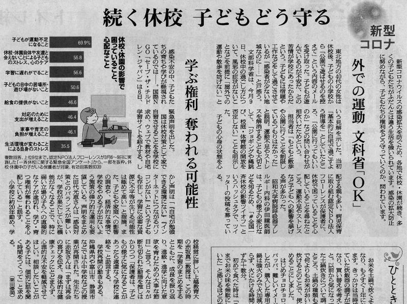 そして、特に、不登校の生徒、虐待されている生徒、いじめなどの人間関係で悩んでいた生徒がこの臨時休業中に、どのように過ごしているのかが心配です。更には受験中の生徒もいます。大人でさえ、マスクやトイレットペーパーが買えないだけでパニックを起こしているのに、全ての子どもが、不安を抱えていることが予想されます。