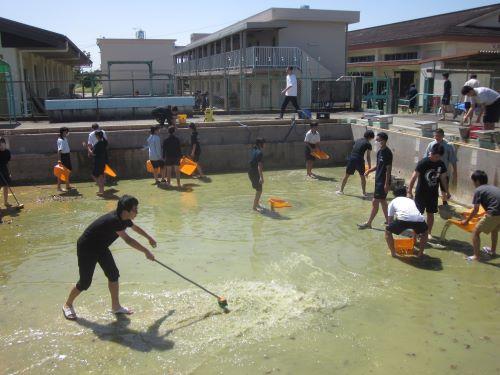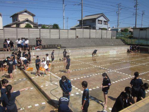 プール掃除 投稿日時 : 2023/05/24 主担 中間テストも終わり、ほっとしたい、のんびりしたい午後の時間。約100名の2.3年生がプール掃除のボランティアに参加してくれました。落ち葉を泥水と一緒に汲みだし、プールの壁を磨くなど、約1時間半の活動に汗を流してくれました。本当にまじめに取り組んでいました。これから、このプールを利用する者を代表してお礼を言いたいです。プール掃除、ありがとうございました。 {{options.likeCount}} {{options.likeCount}}