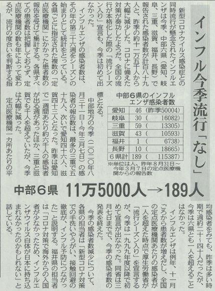インフル流行なし 投稿日時 : 2021/03/21 主担 カテゴリ:今日の出来事 (令和3年3月18日 中日新聞より) 今季は、インフルエンザの流行が全くありませんでした。マスクの着用、手洗い、換気、湿度の保持などの感染症対策が功を奏したと言えます。また、流行シーズンに海外からの入国者が少なかったことや、コロナとインフルのダブル感染を恐れて、インフルエンザの予防接種をしたこともあるのではないでしょうか。新型コロナのワクチン接種が遅れているのが気になりますが、早めに高齢者の方などの接種ができることを願っています。 {{options.likeCount}} {{options.likeCount}}