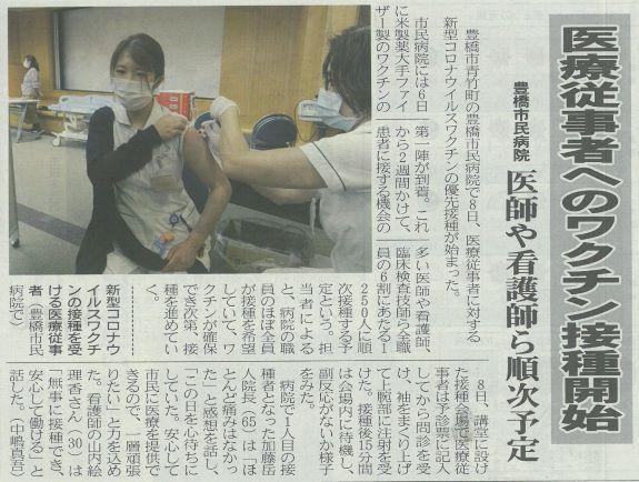 医療従事者へのワクチン接種開始 投稿日時 : 2021/03/09 主担 カテゴリ:今日の出来事 (令和3年3月9日 東日新聞より) 豊橋市民病院で医療従事者に対する新型コロナウイルスワクチンの優先接種が始まりました。東三河の基幹病院である市民病院でもワクチン接種が始まったことは、最先端で患者の対応に当たっていただいているのでとても心強いです。 {{options.likeCount}} {{options.likeCount}}