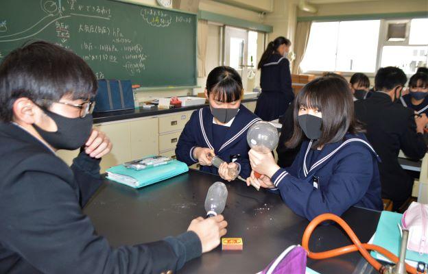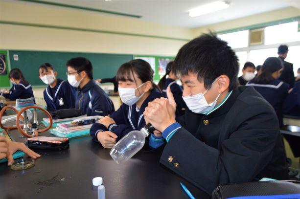 理科の授業では 投稿日時 : 2021/03/09 主担 カテゴリ:今日の出来事 2年生の理科の授業では、気圧の学習をしています。ペットボトル内の気圧を下げて、雲をつくる実験をしていました。 {{options.likeCount}} {{options.likeCount}}