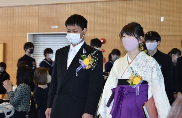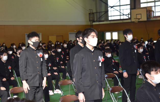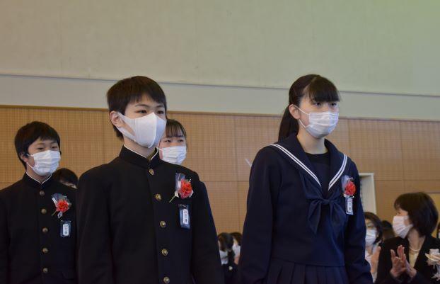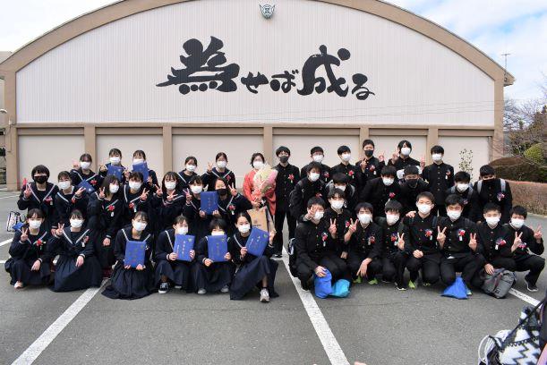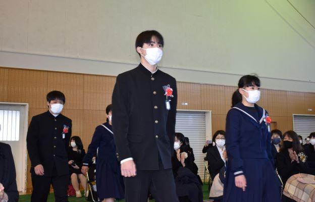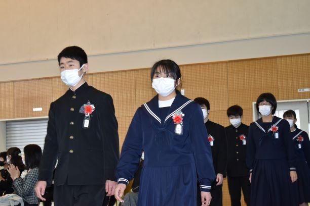 第2部卒業証書授与式 投稿日時 : 2021/03/03 主担 カテゴリ:今日の出来事 第2部卒業証書授与式を挙行しました。二川中学校は静岡県と隣接しているため静岡県の公立高校を受験する生徒が多くいます。そこで、静岡県の公立高校の受検の終わった午後5時から第2部として卒業式を行いました。学年主任先頭の入場、一人一人手渡しの証書授与、校長式辞、卒業の歌「旅立ちの日に」を先生と一緒に歌い、校歌斉唱を行いました。保護者の方にも近くで見守っていただき、ささやかながらも温かな式になりました。 {{options.likeCount}} {{options.likeCount}}