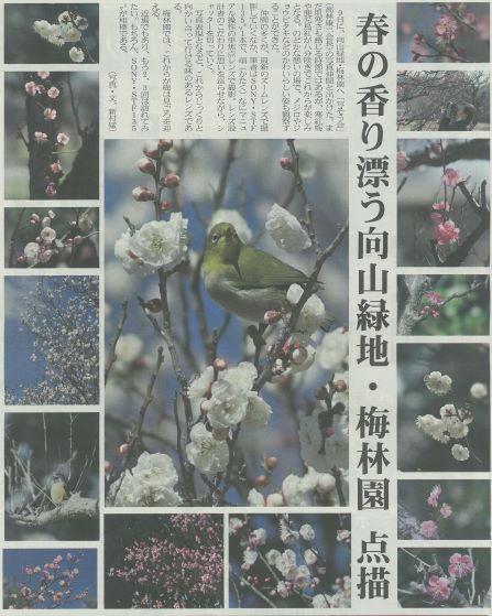 向山緑地梅林園 投稿日時 : 2021/02/15 主担 カテゴリ:今日の出来事 (令和3年2月14日 東日新聞より) 向山緑地の梅が見ごろを迎えています。新聞などにも紹介されており、日曜日早朝に訪れてみました。近所の方が数名散歩をされているだけでした。薩摩紅梅、白加賀、乙女など、色も香りも違うものがたくさんありました。年配の方と挨拶を交わしたときに、「一つ一つ違うからね」と教えていただきました。同じ種類の花でも、香りの強さが違ったり、若木もあれば老木もあり、それぞれがそれぞれの花を咲かせていました。自分の気に入った梅を見つけるのもよいかもしれません。 {{options.likeCount}} {{options.likeCount}}