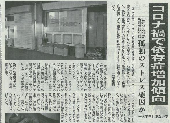 ストレスで依存症になっていませんか? 投稿日時 : 2021/02/16 主担 カテゴリ:今日の出来事 (令和3年2月14日 東愛知新聞より) コロナ禍によって、ストレスから薬物依存症になる人が増えていると言われています。薬物乱用防止教室の講演に来校していただいた「三河ダルク」には、相談件数がコロナ前の2倍程度に増えているとのことです。 {{options.likeCount}} {{options.likeCount}}
