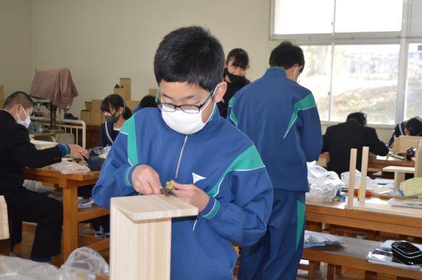 技術の授業では 投稿日時 : 2021/02/17 主担 カテゴリ:今日の出来事 1年生の技術の授業では、木材加工を行っています。自分で考えた本箱などを作っています。 {{options.likeCount}} {{options.likeCount}}