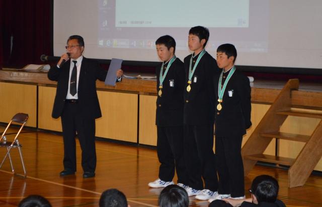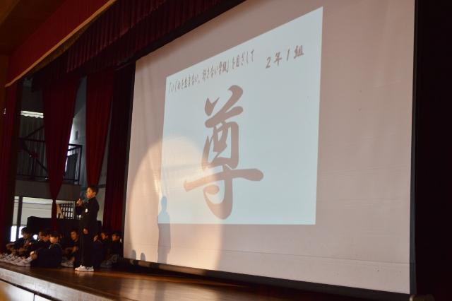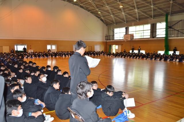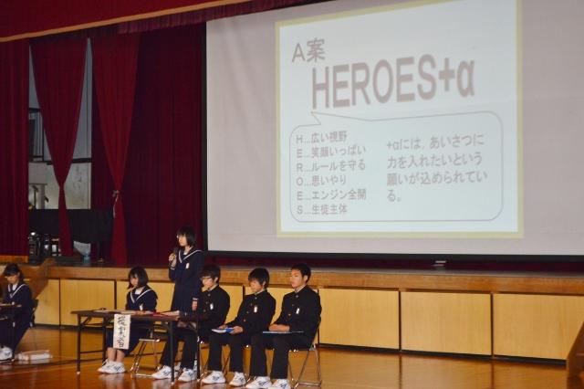 生徒総会を行いました 投稿日時 : 2018/04/16 主担 カテゴリ:今日の出来事 6時間目に生徒総会を行いました。本年度の生徒会テーマについて活発な意見を交わしました。その結果、「HEROES+α」に決定しました。 その後、「いじめを生まない、許さない学級」を目ざして考えた「漢字」を各学級の代表者が発表しました。みんなで、仲がよく温かい学級、学校づくりをしていきましょう。 また、先日行われた第48回日本少年野球春季全国大会で初優勝した愛知豊橋ボーイズのメンバーの優勝報告も行いました。 {{options.likeCount}} {{options.likeCount}}