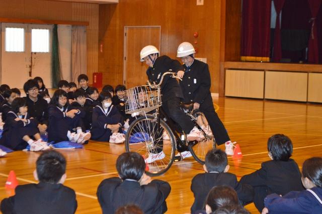 交通安全教室を行いました 投稿日時 : 2018/04/17 主担 カテゴリ:今日の出来事 本日、1,2年生は実力テスト、3年生は全国学力・学習状況調査を行いました。そして午後の6時間目、1年生は体育館で豊橋市安全生活課の山田様をお招きして、交通安全教室を行いました。愛知県は日本一交通事故が多いこと。その愛知県の中でも豊橋市はとても交通事故の発生件数が多いことを教えていただきました。また、一般道では交通違反になる「二人乗り」や「傘差し運転」を実際に体験して、とても危険な運転であることを学びました。二川中学校は、自転車通学生が多くいます。交通ルールを守り、事故のないように安全に生活しましょう。 {{options.likeCount}} {{options.likeCount}}