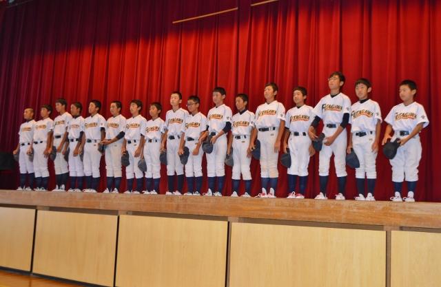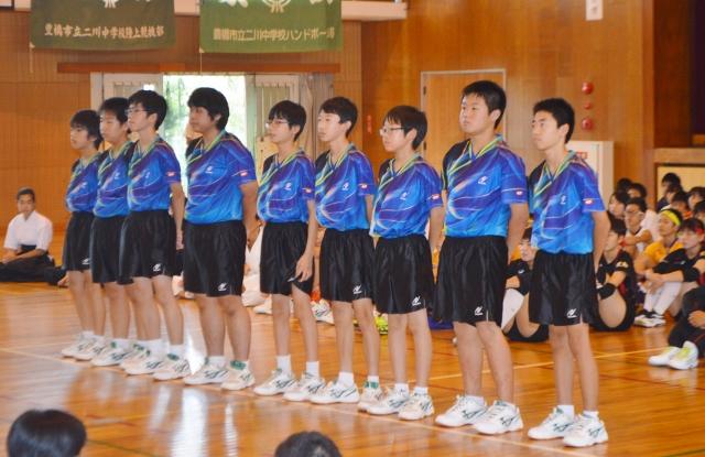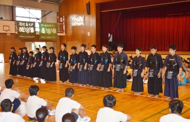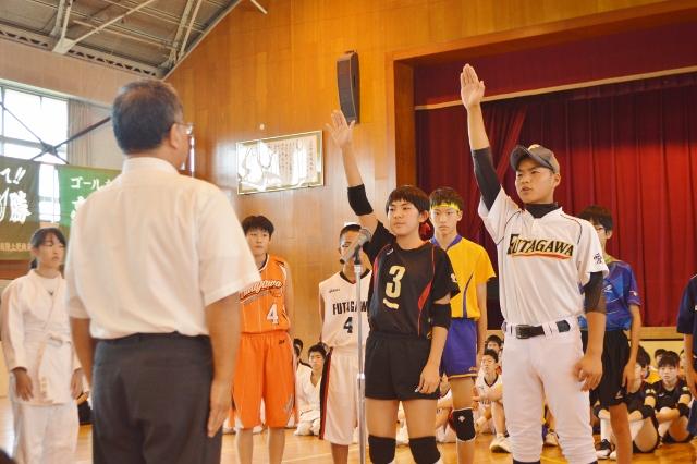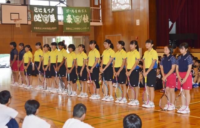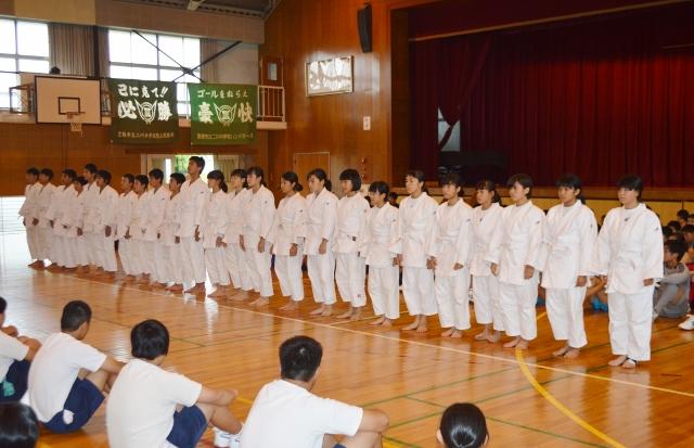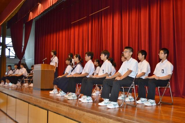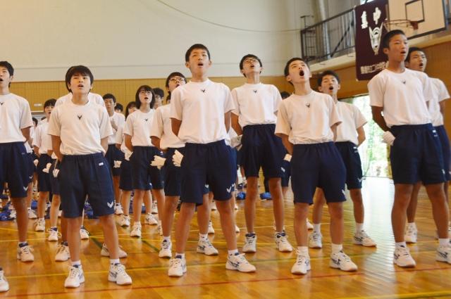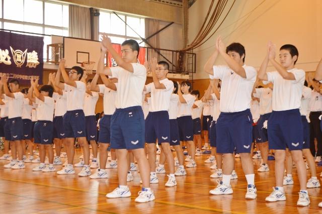 選手激励会! 投稿日時 : 2018/09/27 主担 カテゴリ:今日の出来事 本日6時間目、新人体育大会に向けての選手激励会を行いました。各部活動の元気の良い掛け声での選手入場の後、キャプテンからの大会への抱負、選手宣誓を行いました。そして、3年生の応援団の生徒が中心となって熱いエールを選手たちに贈りました。校長先生からも、最後まで諦めずにがんばり、優勝旗をたくさん取ってくるようにとの励ましの言葉をいただきました。現在、二川中に優勝旗が7本ありますが、どれだけ増えるのか楽しみです。 {{options.likeCount}} {{options.likeCount}}