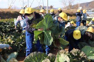 友達と協力し、先生にもお手伝いをしてもらいながら、15個の白菜のお世話をしました。