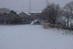 朝の降雪で、校庭は真っ白のきれいな雪景色となりました。