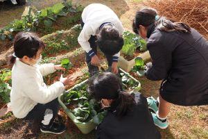 3年生「総合的な学習の時間」の野菜づくりの挑戦。今日は、コマツナの収穫をしました。