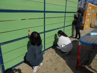 6年生は,卒業プロジェクトの一環で投てき板を新しく塗り替えています。