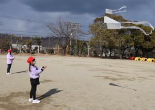 1年生の生活科「かぜとなかよし」でたこあげに挑戦しました。適度な風で,絶好のたこあげ日和でした。どうやったら高くあげられるか考えながら取り組みました。糸を引いたり,走ったりしながら「高くあがった」と,子どもたちはとてもうれしそうでした。たこあげを楽しむことができました。