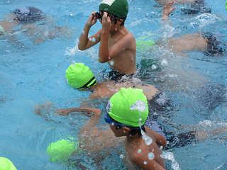 みんな大喜び。ふだんとは,一味ちがう一年生最後のプールとなりました。