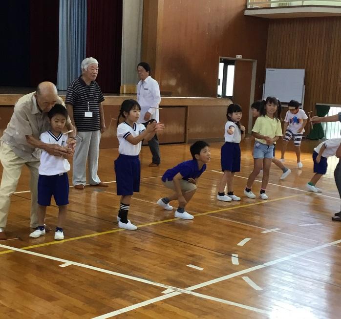 9月25日にむかしあそびのかいがありました。地域の方に昔遊びを教えていただきました。子どもたちも初めてやる遊びに,とても楽しそうにしていました。