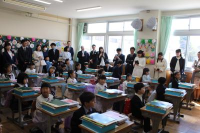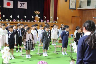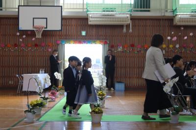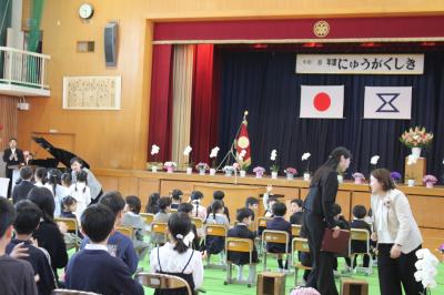 新入生は、新担任の先生の呼名に対して、大きな声で「はい」と言って立ち上がり、元気いっぱいの姿を見せてくれました。また、新入生を迎える新6年生も、素敵な歓迎の言葉と、美しい声で、本校の校歌を披露することができました。
