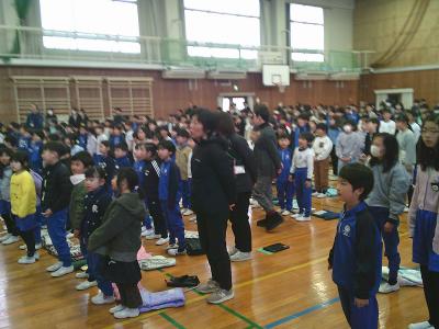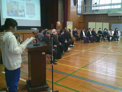 地域の方の紹介、児童代表のお礼の言葉、「ありがとうの歌」斉唱、地域の代表の方からのお話といった内容でした。