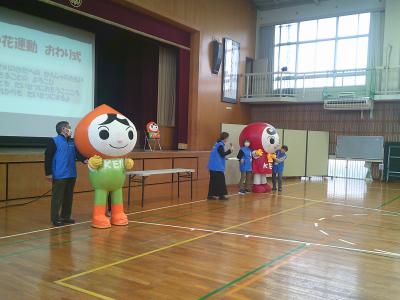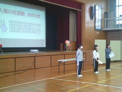 実際には、育てた人権の花をお世話になった地域の方に贈る「ありがとうの会」と並立して、ありがとうの会の終了後におわり式を行いました。