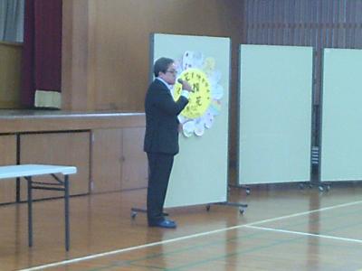 本校には、4つの花があり、その一つが「思いやりの花」です。今後とも友達にやさしく、思いやりの心をもつ人に育ってもらいたいと思います。名古屋法務局のみなさん、人権擁護委員のみなさん、1年間ありがとうございました。