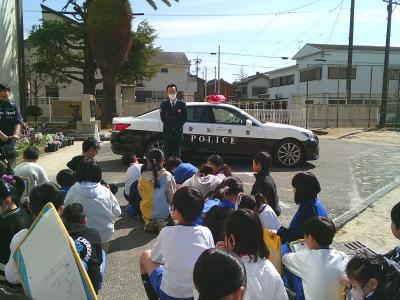 最後は運動場のパトカーを見学し、一緒に記念撮影をしました。