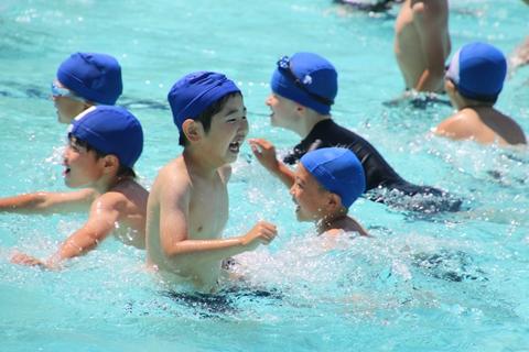 6月13日(火) 1日遅れでプール開きが行われました。昨日とうって変わり、絶好のプール日和となりました。最初にプールに入ったのは1年生と5年生です。1年生にとって初めての小学校のプールです。どの子も歓声を上げながらプールに入り、楽しんでいました。5年生はさすが高学年です。準備体操をしっかりと行い、水泳を楽しんでいました。夏休み前までの短い期間ですが、楽しみながら泳法を学び、少しでも長く泳ぐことができるようになるとよいですね。