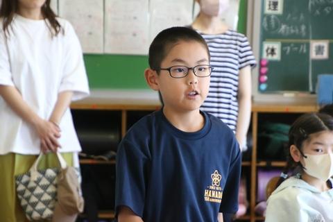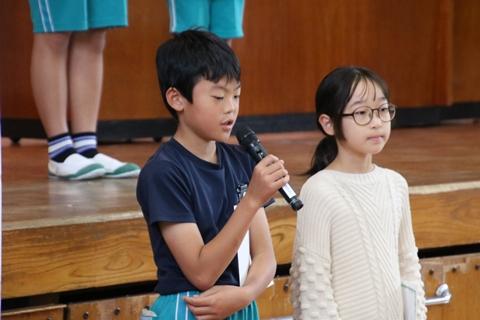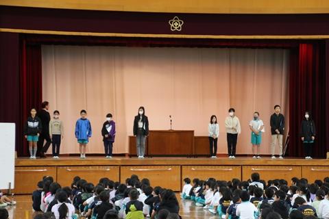最後に学級代表や委員長に、全校から大きな拍手が送られました。さらに楽しく、輝く笑顔いっぱいの花田小学校をみんなで創っていってください