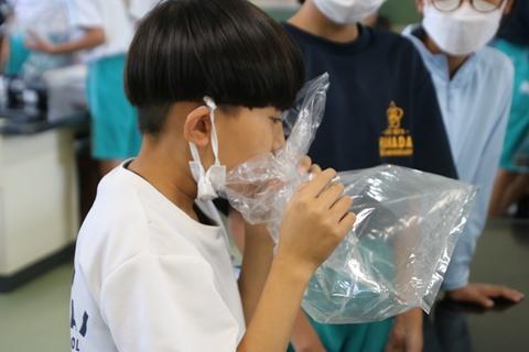 結果が知りたくなる実験や、予想と異なる実験結果の数々に、どの子も思わず歓声をあげたり、結果を一生懸命に予想したり、食い入るように見つめたりしながら、空気の不思議さを学びました。