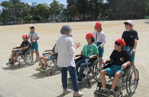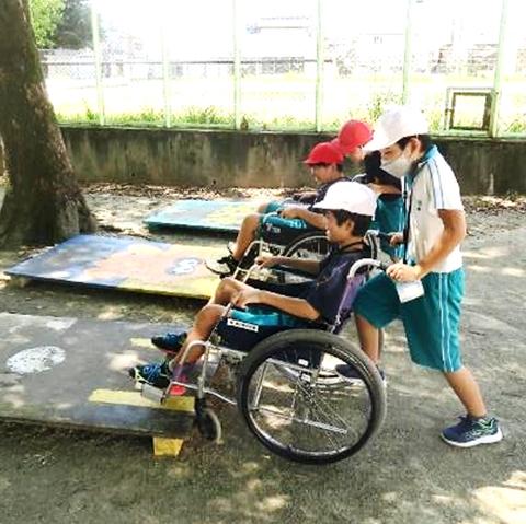 9月29日(金) 人にやさしい街づくりアドバイザーと市役所・建築指導課の方を講師に招き、出前講座「人にやさしいまちづくり ~車いす体験を通して~」を行いました。5年生は小グループに分かれて、車いすに乗る、車いすの人を介助するという体験活動に取り組みました。ふだんは気にならなかった学校のさまざまなバリア・段差の存在に気づいたり、どのように介助してもらうと安心かなどを体感したりできました。活動後は、グループごとに講師の方とともに振り返りを行いました。