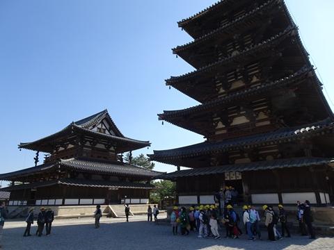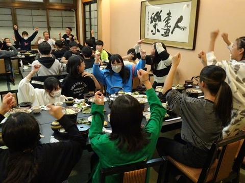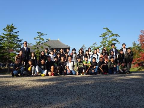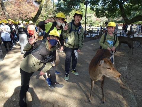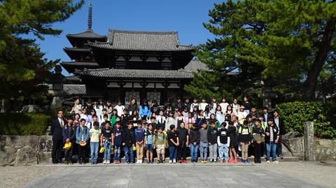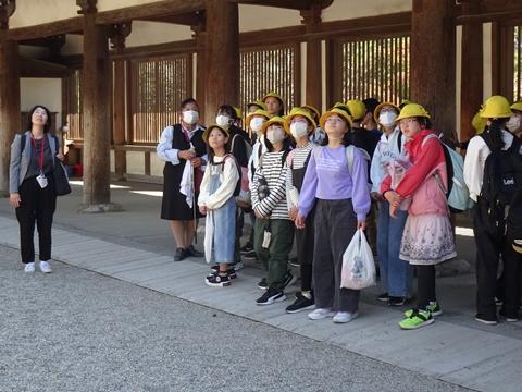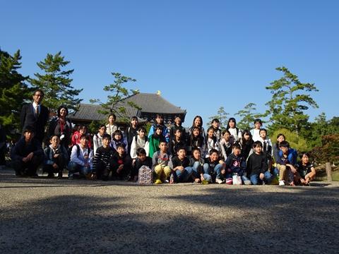 1日目は、法隆寺や東大寺、春日大社や興福寺などの歴史的建造物を見学したり、たくさんのシカに驚いたりしながら、日本の歴史や先人の建築技術を直に感じることができました。宿泊地は奈良のホテル。各部屋で思い思いに仲間と楽しい時間を過ごしました。また、夕食後は、実行委員の楽しいゲームが行われ、全員で楽しめました。