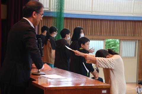 はじめに4年生から6年生までの学級代表に校長先生から任命証が渡され、それぞれ学級をどのようにしていきたいか抱負を発表しました。