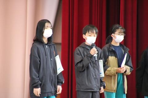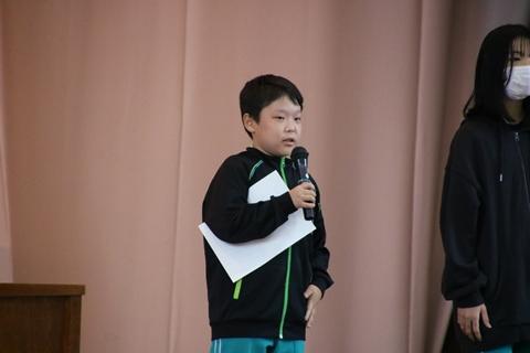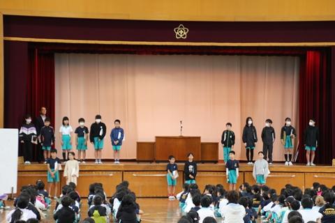 表彰式後は、活動に対する感想交流会を行いました。多くの子が積極的に挙手をし、「協力できてよかった」「レク係の問題がおもしろかった」など、自分の思いを友達に伝えることができました。(その2に続く)