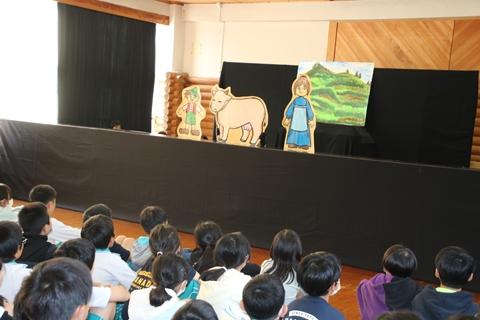 11月9日(木) 5・6年生を対象に図書ボランティアの皆さんによる「おはなしのへや」が行われました。演目は有名な「ジャックと豆の木」です。図書ボランティアの皆さんの熱演にどの子も物語の世界に引き込まれ、お話を楽しみました。