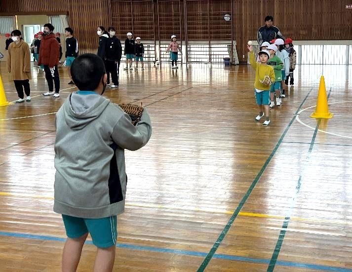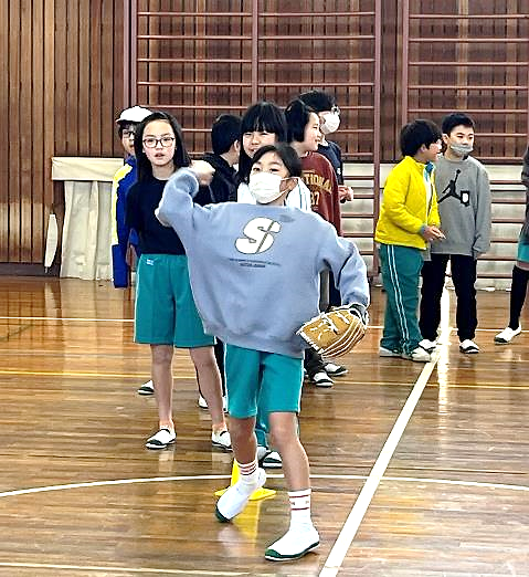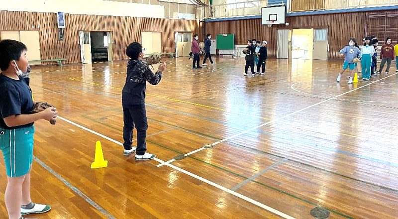 2月5日(月) 今週の「野球しようぜ!(野球教室)」は、3・5年生が対象です。スラッガーズ5年生が、これまでの野球教室と同じように、やさしく投げ方、受け方を教えてくれています。キャッチボールの経験がない子であっても、「一度やってみる」「挑戦してみる」とよいと思います。どんなことでも経験してみることが、自分の可能性を広げることにつながると思います。スラッガーズの皆さん、今週もよろしくお願いします。