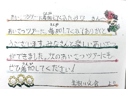 この活動に参加した子は、写真のようなカードを持ち帰り、ご家庭で話をすると思います。保護者の皆様からも、自主的に参加できたことや児童会活動に協力できたことなどについて、ぜひほめてあげてください。この言葉がけが、一人一人の自己有用感や自己肯定感を高めていきます。ご協力をお願いします。