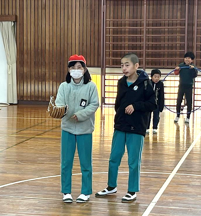 1月22日(月) 今週から2限後の休み時間に、花田スラッガーズ6年生が、野球教室を開いてくれています。グローブはもちろん大谷選手から贈られたグローブです。今週は1・6年生、来週は2・4年生、再来週は3・5年生を対象に開かれます。毎日多くの子が体育館に集まり、投げ方や受け方を教えてもらいながら楽しんでいます。2~5年生の皆さんは、もう少し待っていてください。スラッガーズの皆さん、毎日休み時間にみんなのために野球教室を開いてくれて、ありがとうございます。これからもやさしく教えてあげてください。