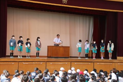 5月17日(水) 令和5年度前期任命式が行われました。校長先生から各委員会の委員長や3年生以上の学級代表が任命証を受け取りました。その後,各学級代表と委員長が「こんな学級や学校にしたい」と目標や願いを話し,決意表明を立派に行いました。どの代表もやる気に満ちあふれた表情をしていました。聞き手側の子どもたちの姿勢も立派でした。任命されたリーダーを中心に,輝く笑顔あふれる花田小学校にしてくれることを期待しています。