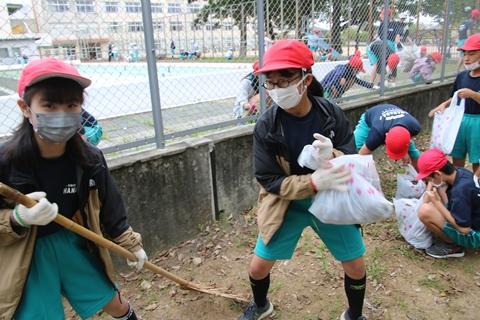 5月25日(木) 花田っ子全員で530運動をしました。どの子も真剣に校庭や花田公園に落ちている落ち葉や枝,ゴミなどを拾いました。