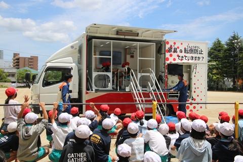 5月26日(金) 消防署の方を招いて,防災体験学習を行いました。この学習の最大の目玉は起震車による地震体験です。どの子も起震車で発生する地震に必死に耐えていました。そして,地震は恐ろしいものですが,少しでも身の安全を確保するために,どのようなことを心がけたらよいかを真剣に考えていました。
