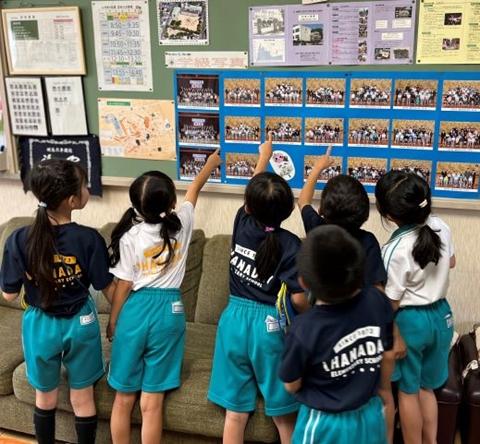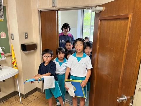 5月29日(月) 2年生が1年生を案内し、学校の教室や特別教室などを紹介する活動をしました。校長室では、学級写真に興味津々でした。入室時、リーダーの2年生がしっかりと挨拶をすることができました。2年生は、昨年度・1年生のときの経験を思い出しながら、やさしく、丁寧に案内することができました。お兄さん、お姉さんとして頼もしい姿でした。成長を感じます。