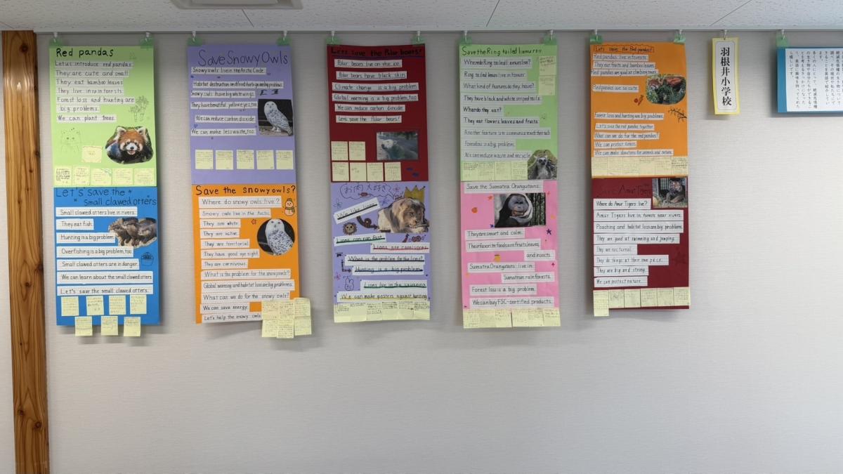 英語の授業×総合的な学習の時間で,「のんほいパークから学ぶ命の危機~わたしたちにできること~」をテーマに,絶滅危惧種について学び,その動物たちを守るために自分たちにできることを考えてきました。学んだことを地域の方やより多くの人たちに知ってもらいたいという思いで,英語ポスターを作成しました。そのポスターをのんほいパークの「ひだまり交流館」に3月31日まで掲示してもらっています。ぜひ,のんほいパークに足を運んでいただき,6年生の子たちの思いを知ってもらえたらうれしいです。